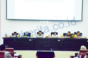 Rapat Paripurna dipimpin oleh Wakil Ketua Hj.Sri Suroto dengan agenda Persetujuan raperda tentang Pertanggungjawaban Pelaksanaan APBD Tahun Anggaran 2018, sekaligus mendengarkan pandangan akhir Fraksi Fraksi.
