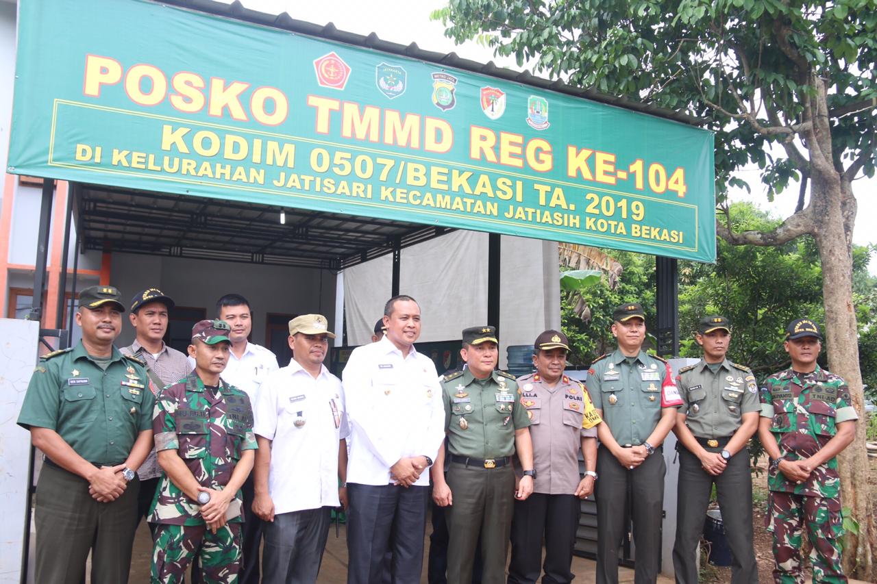 KOTA BEKASI, TVBERITA.CO.ID- Wakil Walikota Bekasi, Tri Adhianto tjahyono bersama Asisten Teritorial Panglima TNI, Mayor jendral TNI George Elnandus Supit, Komandan Kodim 05/07 Kota Bekasi, pantau kegiatan TMMD ke 104 di kelurahan Jatisari Kecamatan Jati Asih Kota Bekasi, Selasa (19/03/2019).