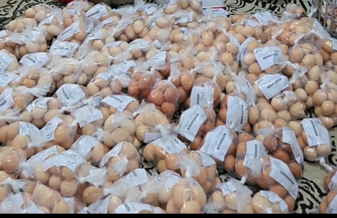 Hal ini terbukti dalam unggahan di akun Medsos Bupati Saepul Bahri Binzein yang sedang mengemas 15.000 telur yang disisipi kertas dengan tulisan yang belum jelas isi tulisannya tanpa menyebutkan asal telur dari mana.