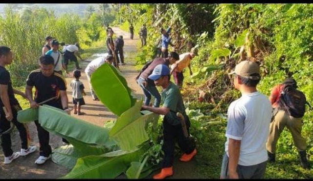 PURWAKARTA, TVBERITA.CO.ID- 1 Pleton Anggota Brimob dari Kompi 3 Yon C Pelopor Satbrimob Polda Jabar, bersama masyarakat Desa Parakan Lima melaksanakan Jumat Bersih (Jumsih) di Desa Parakan Lima, Kecamatan Jatiluhur, Purwakarta, Jumat (22/2/2019).