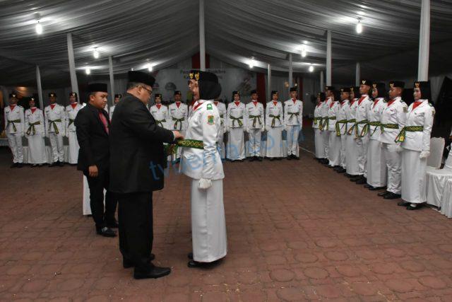 KARAWANG, TVBERITA.CO.ID- Sebanyak 52 orang anggota pasukan pengibar bendera pusaka (Paskibraka) Kabupaten Karawang tahun 2019, dikukuhkan Bupati Karawang, dr. Hj. Cellica Nurrachadiana yang diwakili oleh pembina upacara Sekretaris Daerah (Sekda) Kabupaten Karawang, Drs. Acep Jamhuri, MSi., di halaman upacara Plaza Pemkab Karawang, Kamis (15/8) malam.