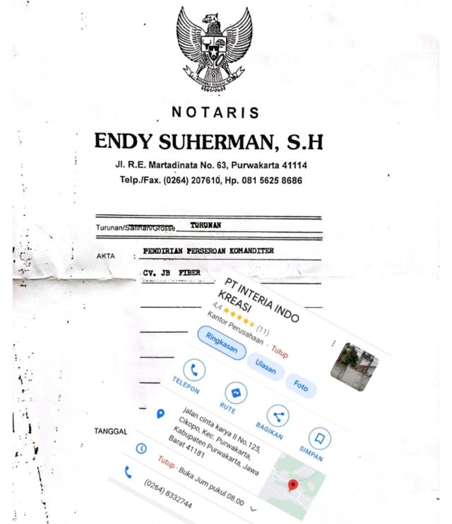 Sebelumnya CV JB Fiber yang merupakan milik dari Nurhayati Komalasari sebagai Dirut berdasarkan akte notaris belum pernah memberikan atau memindahkan CV JB Fiber menjadi PT Interia Indo Kreasi, bahkan pihak Satpol PP Kabupaten Purwakarta sempat memberhentikan produksi CV JB Fiber karena belum membayar retribusi IMB.
