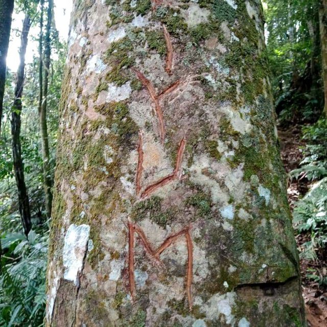 Sebanyak 20 pohon di jalur pendakian tersebut tampak pohon yang kulitnya terkelupas dan rusak. Kulit pohon tersebut dikelupas menggunakan benda tajam. Pada bagian yang rusak terdapat tulisan “IYUM” menggunakan huruf kapital.