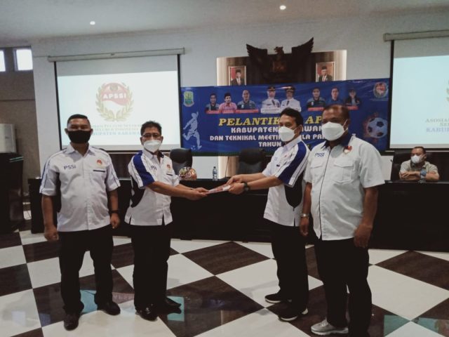 KARAWANG – Asosiasi Pelatih Sepak Bola Seluruh Indonesia (APSSI) Kabupaten Karawang melantik 27 orang pengurus APSSI Kabupaten Karawang yang di gelar di Aula lantai 3 Gedung Bupati Kabupaten Karawang, Sabtu, (25/9/2021).