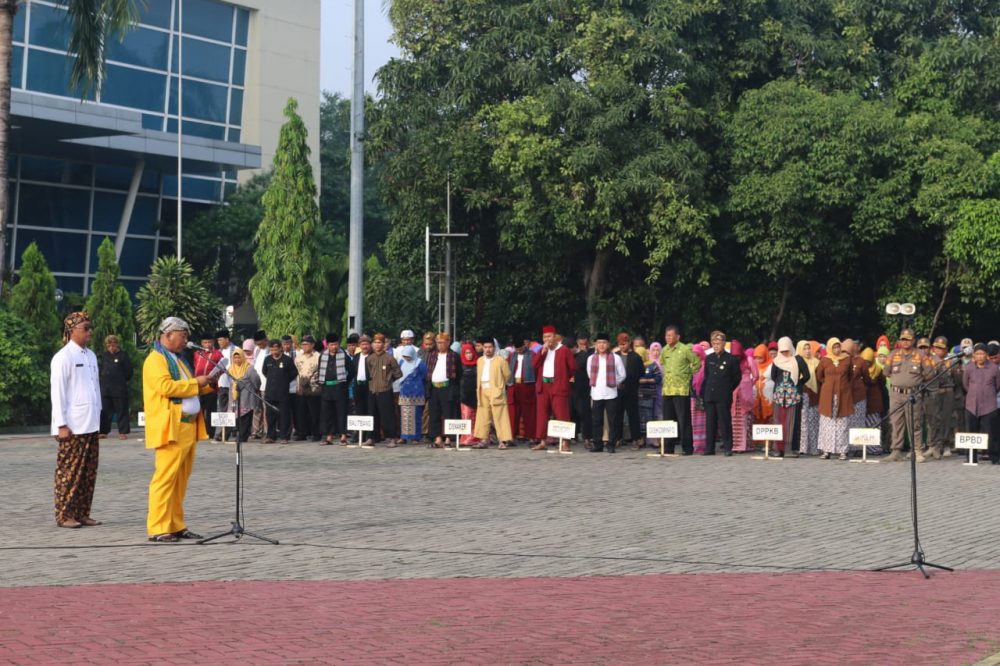 Tampak pada peringatan Hari Bela Negara kali ini, seluruh unsur Forkopimda, ASN dan Non ASN mengenakan pakaian adat.