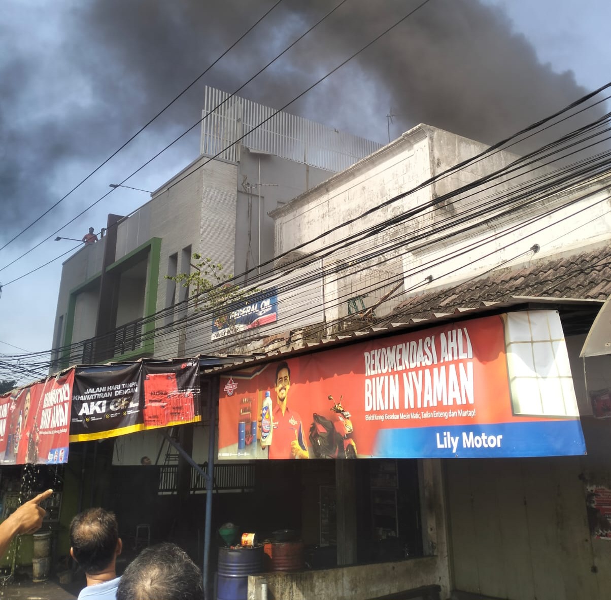 “Sementara api sudah dapat dilokalisir, tinggal pendinginan. Cuman aksesnya sulit, ada bahan baku yang terbakar, penyimpanan gudang kali ya ban, oli, karena ini bengkel,” jelasnya.