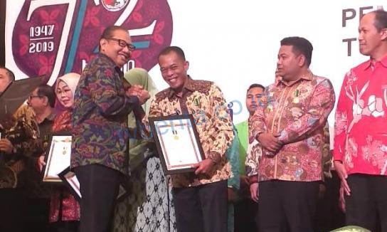 SUBANG, TVBERITA.CO.ID- Bupati Subang H. Ruhimat, S.Pd, M.Si menerima penghargaan Jasa Bakti Koperasi dan UKM dari Menteri Koperasi dan Usaha Kecil Menengah (UKM) Republik Indonesia Anak Agung Gede Ngurah Puspayoga di Hotel Java Harritage Banyumas, Kamis (11/7/2019).