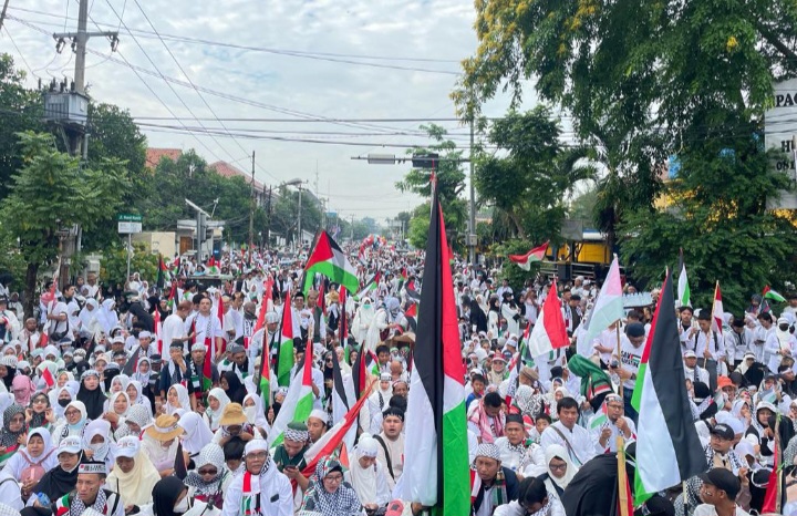 KARAWANG – Penggalangan donasi dilakukan dalam Aksi Bela Palestina di Karawang, Jawa Barat pada Minggu pagi, 26 November 2023. Saat ini pintu donasi masih dibuka untuk nantinya disalurkan ke warga Palestina.