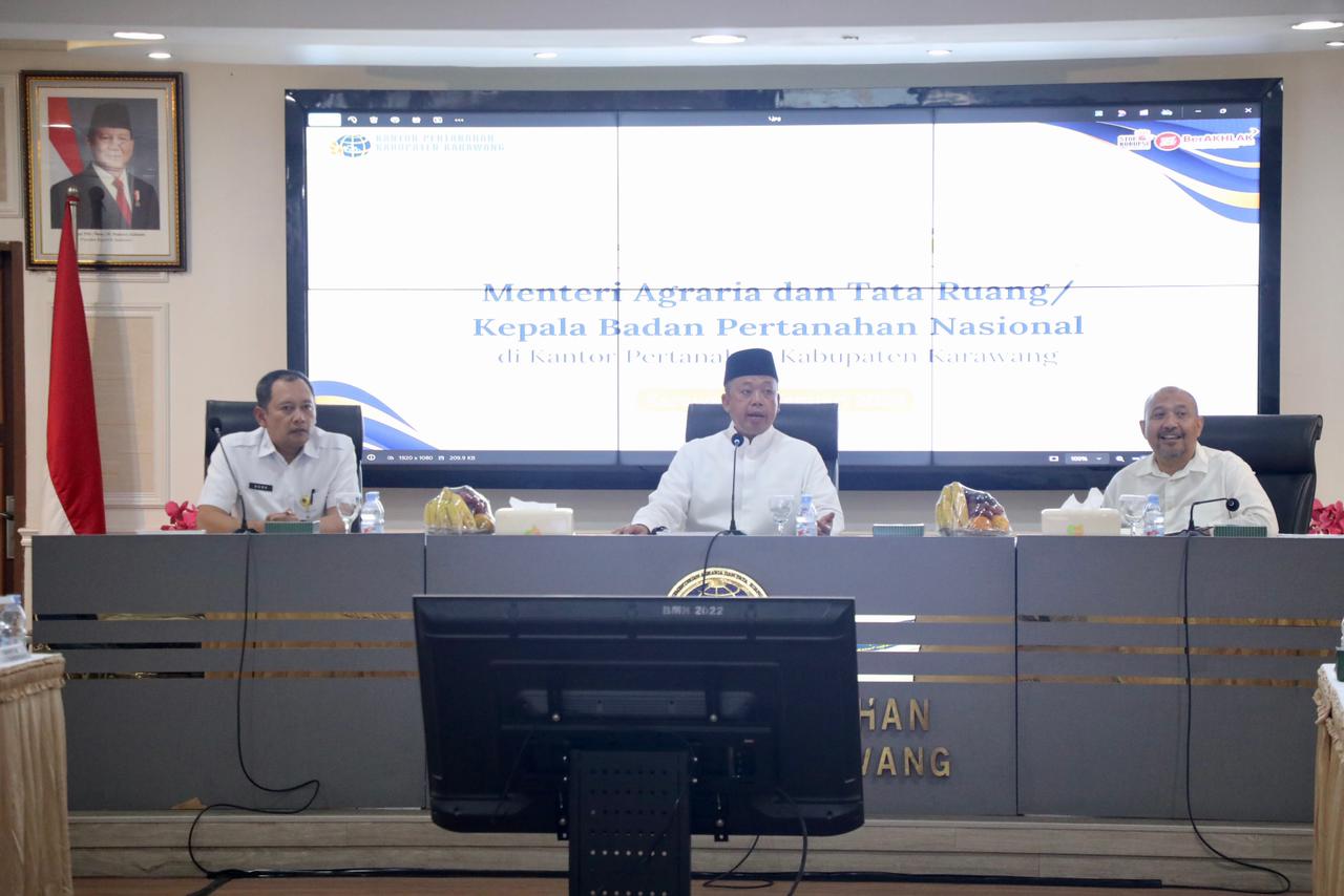 Diketahui, Menteri Agraria dan Tata Ruang/Kepala Badan Pertanahan Nasional (ATR/BPN), Nusron Wahid memberikan pengarahan kepada perwakilan dari organisasi keagamaan di Kantor Pertanahan Kabupaten Karawang, Rabu (07/01/2026).