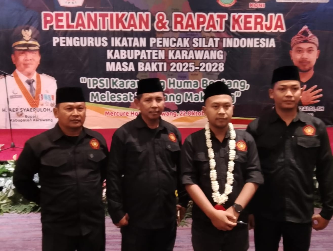 KARAWANG – Pengurus Ikatan Pencak Silat Seluruh Indonesia (IPSI) Kabupaten Karawang resmi dilantik sekaligus menggelar rapat kerja masa bakti 2025–2028 di Hotel Mercure, Telukjambe Timur, Rabu (22/10).