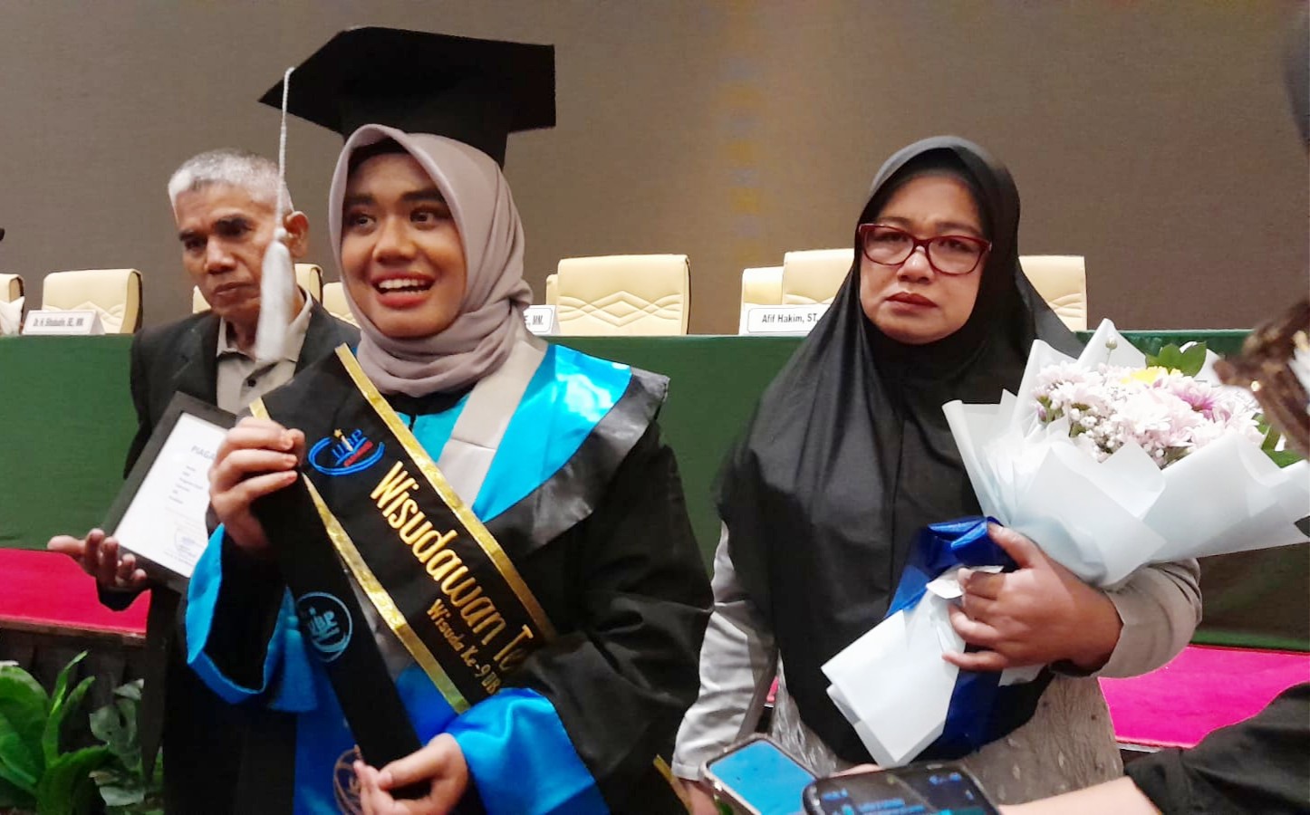 KARAWANG – Siti Novianti Nuraini Arif, seorang anak dari pedagang nasi uduk berhasil lulus dengan predikat cumlaude di Universitas Buana Perjuangan (UBP) Karawang.