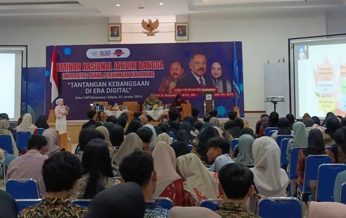 seminar Jati Diri Bangsa UBP Karawang di Aula Rektorat UBP Karawang pada Selasa, 23 Januari 2024.