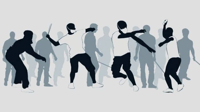 Dengan berbekal senjata tajam (Sajam) di tangan, para pelajar berlarian berusaha mengejar dan menyerang kubu lawan.