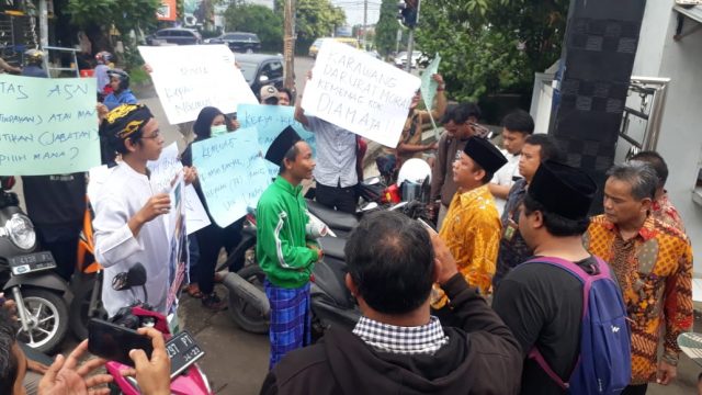 KARAWANG, TVBERITA.CO.ID – Puluhan aktivis yang mengatasnamakan Forum Santri Karawang mendemo Kepala Kantor Kementerian Agama (Kakan Kemenag) Kabupaten Karawang, H. Sopian, gegara foto bareng dengan Bupati Karawang, Cellica Nurrachadiana yang juga merupakan Calon Incumbent Pilkada 2020 sambil melakukan pose salam dua jari (salam dua periode).
