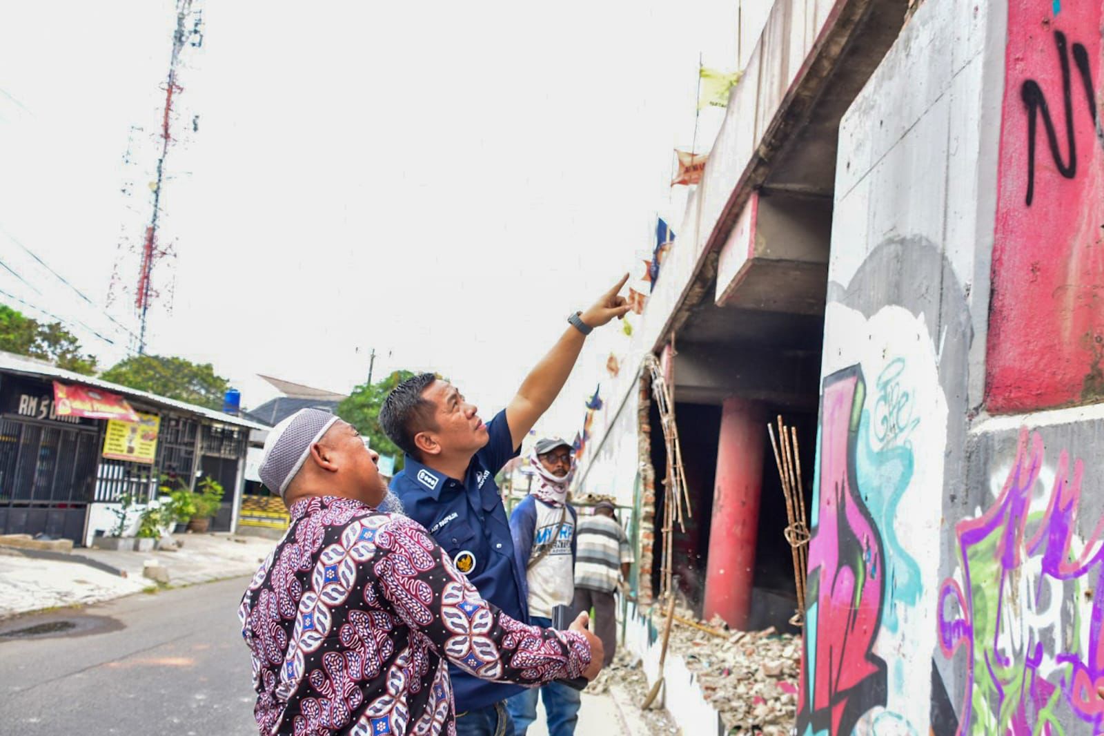 KARAWANG – Potret yang memperlihatkan dinding flyover Bypass retak di Jalan Interchange Karawang Barat, viral. Bupati Karawang, Aep Syaepuloh bergerak cepat meninjau ke lokasi.