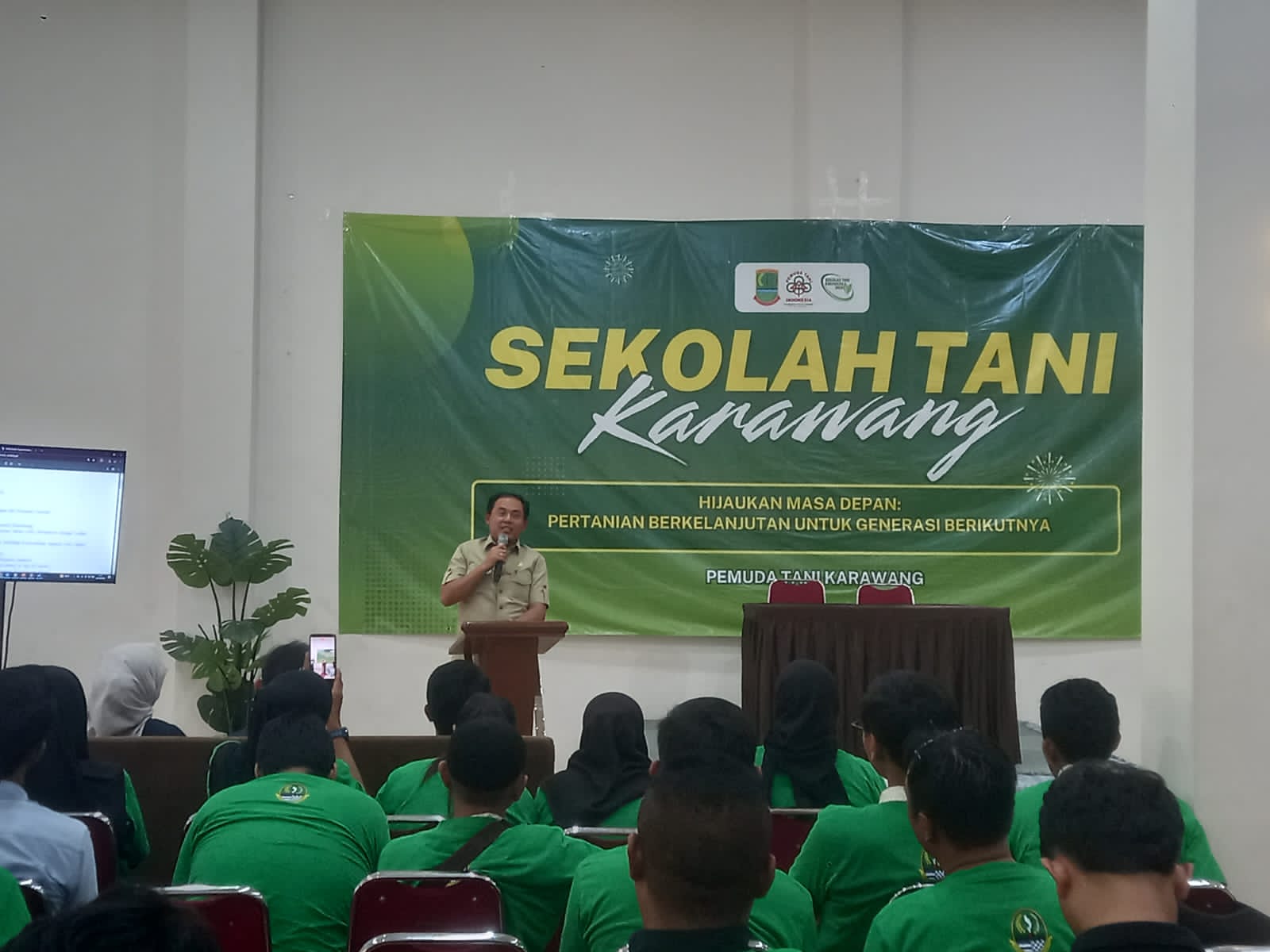 KARAWANG – Sekolah Tani Karawang yang digelar di Rumah Makan Pawon Sae pada Selasa (14/10) menjadi ajang edukasi pertanian bagi para insan agrikultur dari seluruh penjuru Karawang. Kegiatan ini mengusung tema “Hijaukan Masa Depan: Pertanian Berkelanjutan untuk Generasi Berikutnya”.