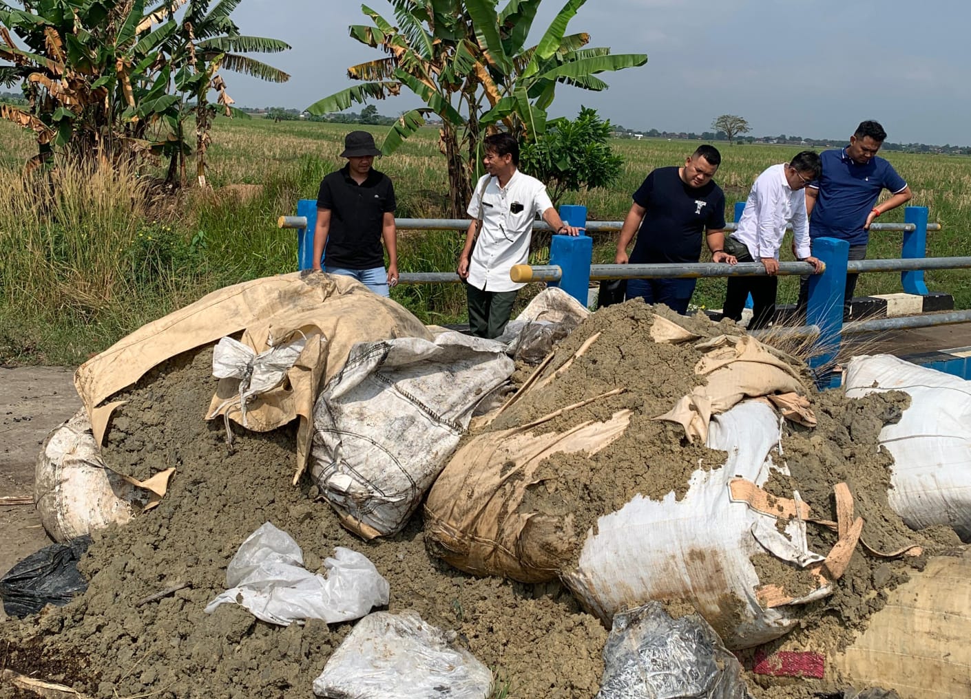 “Sekitar 8–10 jumbo bag limbah sludge menumpuk di lokasi, dua di antaranya berada langsung di saluran irigasi,” ungkap Kepala Bidang Penaatan Peraturan Lingkungan DLH Karawang, Willyanto Salmon.