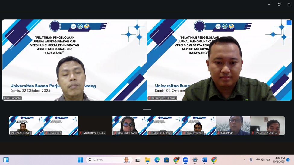 Pelatihan dilaksanakan secara daring melalui Zoom Meeting dan diikuti oleh seluruh pengelola jurnal di UBP Karawang.