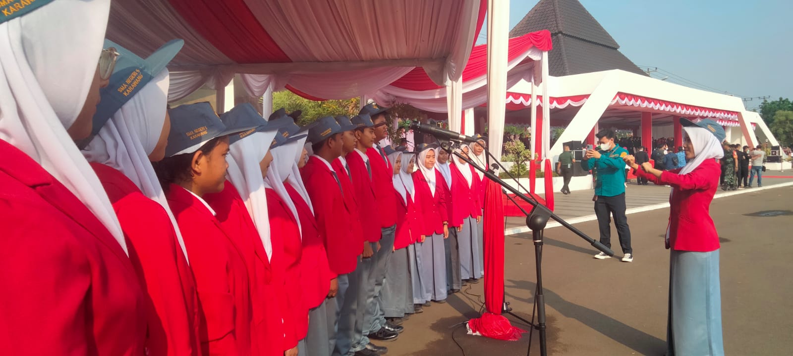 KARAWANG- Dalam momentum Peringatan HUT RI ke-77, Pemkab Karawang menunjuk Paduan Suara SMAN 5 Karawang untuk mengisi acara upacara di Lapangan Karangpawitan.