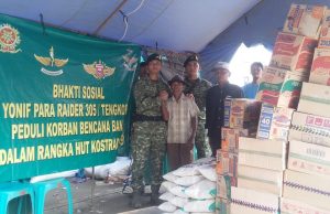 KARAWANG, TVBERITA.CO.ID - Yonif PR 305/Tengkorak melaksanakan kegiatan bhakti sosial peduli korban bencana Banjir di Wilayah Desa Karangligar Kecamatan Telukjambe Barat, Karawang, Rabu (4/03/2020).